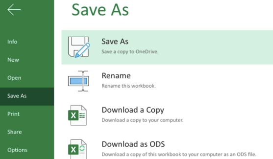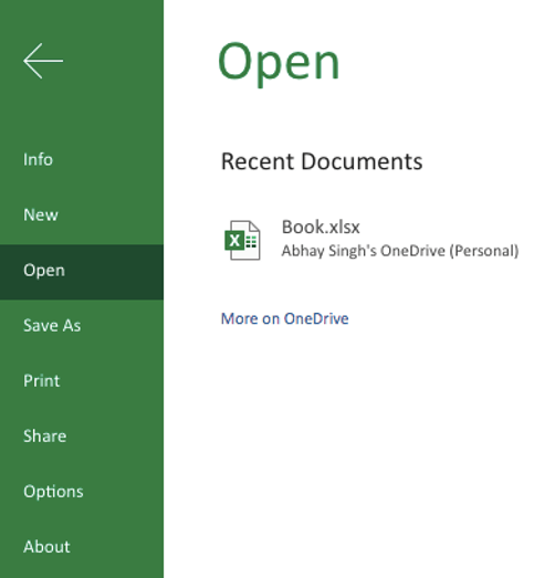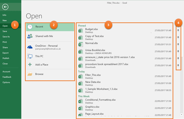 The backstage view has three sections or panes.